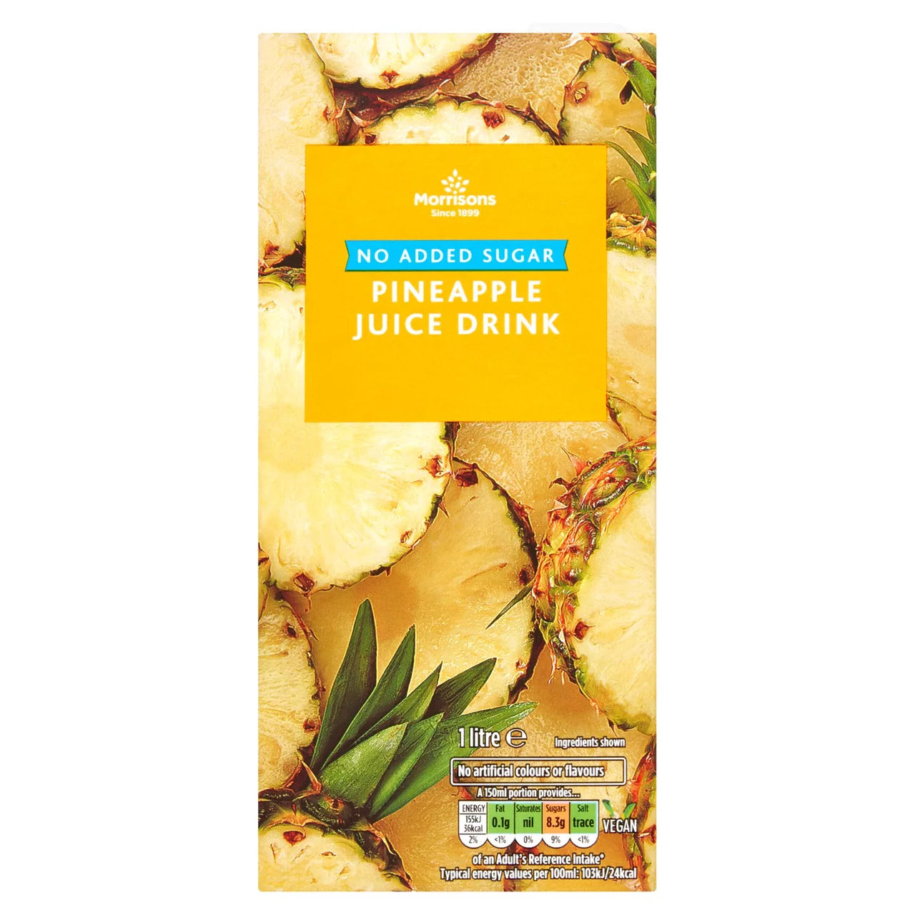 Összetevők: ananászlé koncentrátumból (50%), víz, stabilizátor (pektinek), aromaanyagok, sav (citromsav), édesítőszer (szukralóz).