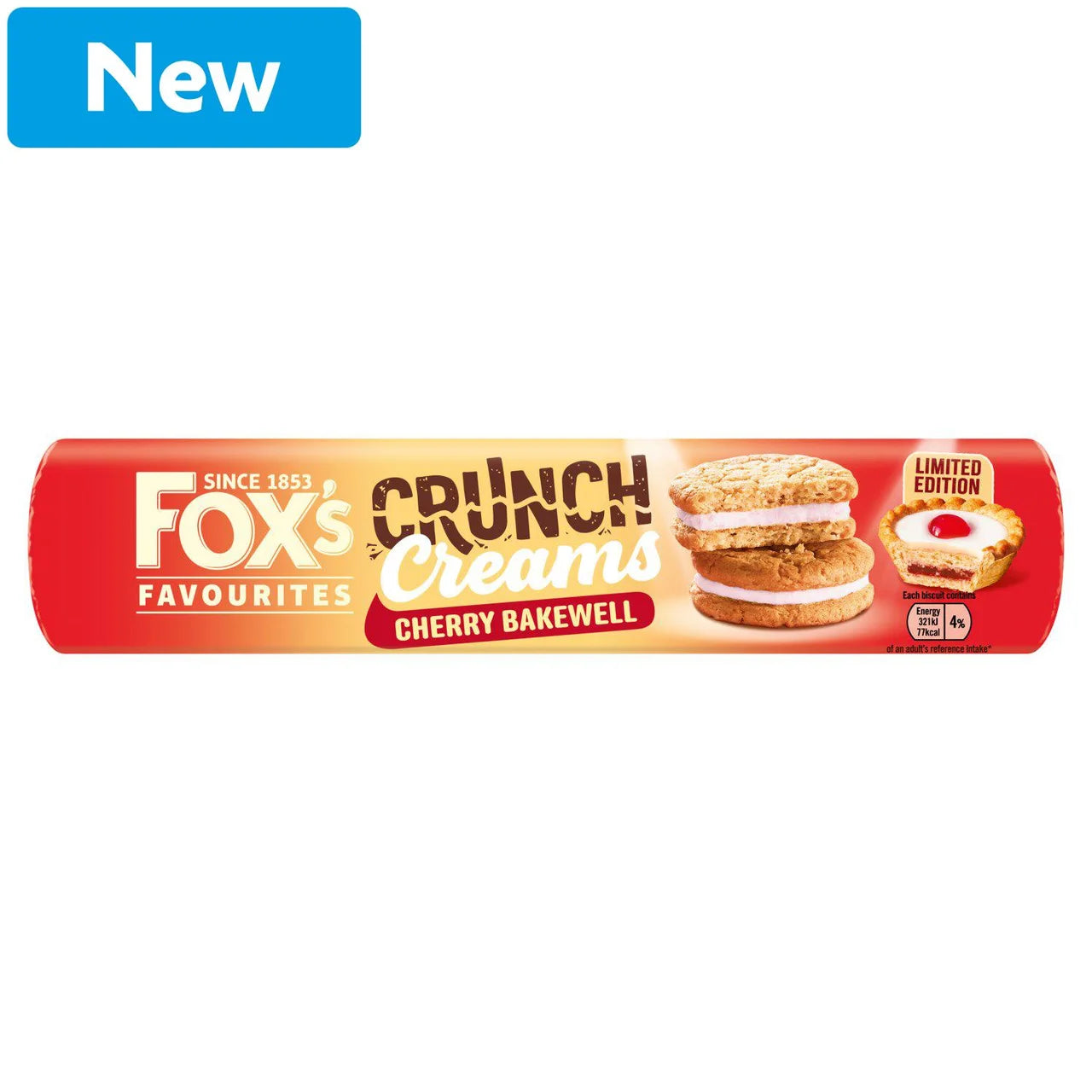 A Fox's Crunch Creams Cherry Bakewell egy ízletes, zabpelyhes keksz, amelyet gazdag, krémes töltelék és jellegzetes cseresznye íz tesz különlegessé. Tökéletes választás egy finom tea vagy kávé mellé.